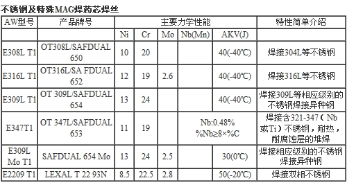 不銹鋼及特別MAG焊藥芯焊絲