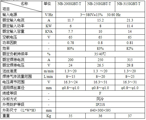 NB-200/250/315IGBT-T逆變式CO2/MIG/MAG氣體保護焊機